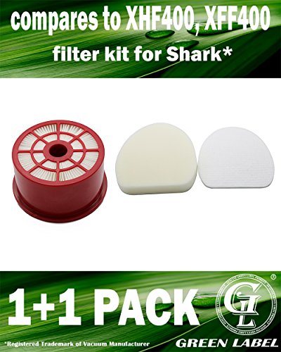This is a Green Label HEPA Filter and Foam and Felt Filter Kit for Shark Rotator Professional, Rotator Professional with XL Reach, Rotator Professional Performance Plus, Rocket Pro, Professional Lift-Away Vacuum Cleaners. Shark OEM # XFH400 and XFF400 and fits the following models: NV400, NV401, NV402. The package contains: 1 x HEPA Filter and 1 x Foam and Felt Filter Kit. Filters are essential for your vacuum cleaner to function properly. They trap fine dust particles and allergens, preventing them from recirculating into the air of your home. It is important to clean and replace them regularly for them to work. This HEPA Filter is washable and reusable. No questions asked return policy. Fully refundable. Green Label is a premium and environmentally friendly manufacturer of aftermarket vacuum and steam mop filters and accessories. All vacuum brand and model names are registered trademarks of vacuum manufacturers. This product is designed and manufactured by Green Label. This is not a Shark OEM product and is not covered under Shark manufacturer's warranty. The Shark brand names and logos are the registered trademarks of their respective owners. Any use of the Shark brand name or model designation for this product is made solely for purposes of demonstrating compatibility.Green Label HEPA Filter + Foam and Felt Filter Kit for Shark Rotator Professional, Rotator Professional with XL Reach, Rotator Professional Performance Plus, Rocket Pro, Professional Lift-Away Vacuum Cleaners
